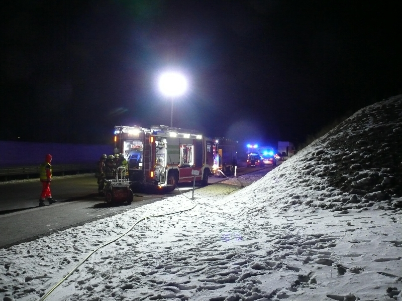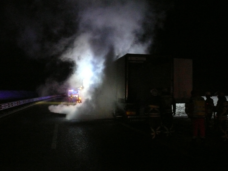 Beim eintreffen der Feuerwehr brannte die rechte Seite eines Sattelaufliegers. Die B17 musste für die Löscharbeiten komplett gesperrt werden.