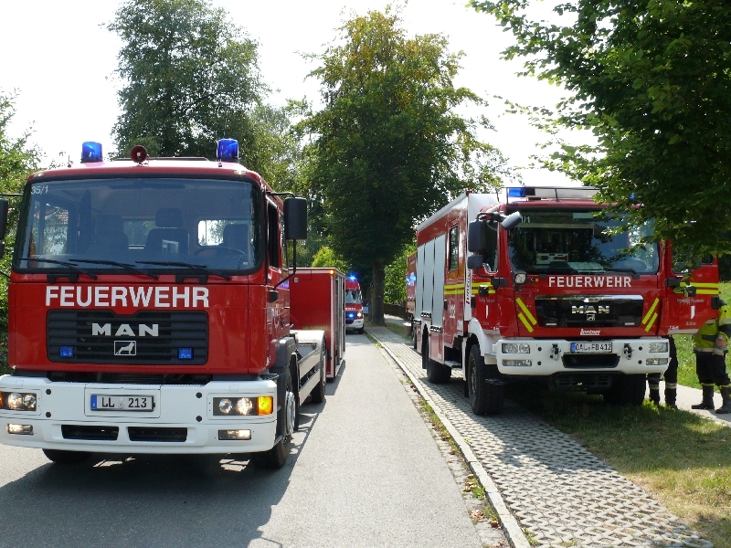 Die Feuerwehr Landsberg wurde mit dem Abrollbehälter Umwelt zur unterstützung nach Buchloe alarmiert. In dem dortigen Freibad war eine Leckage an einer 65 kg Chlorgasflasche. Von der Feuerwehr Landsberg war 1 CSA-Trupp zum abdichten der Leckage im Einsatz.