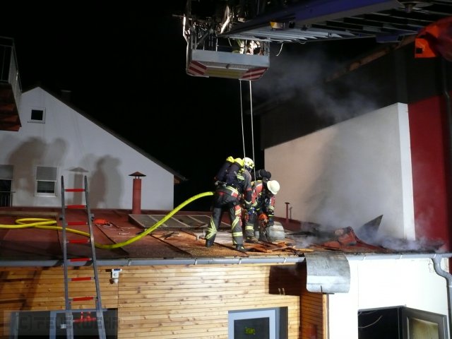 Dieser breitete sich auf das Dach des Heizungsraumes aus. Ein Teil des Daches musste mit der Multicut geöffnet werden. Die Feuerwehr war mit zwei C-Rohren und schwerem Atemschutz im Einsatz.
