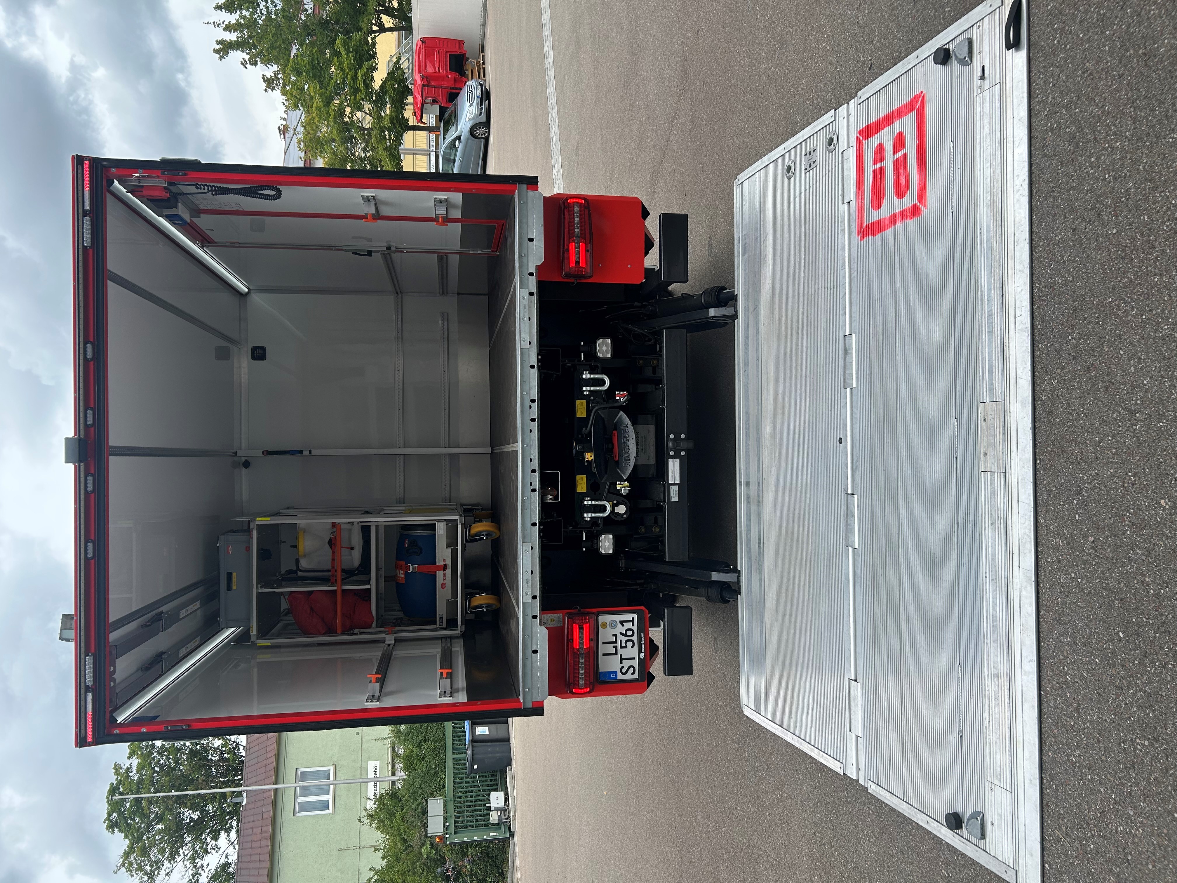 Bei unserem Gerätewagen Logistik handelt sich um ein Sonderfahrzeug der Feuerwehr zum Transport von Geräten, vornehmlich Ausrüstungsgegenständen für die Wasserversorgung. Für ein einfaches Be- und Entladen ist das Fahrzeug mit Ladebordwand und Rückfahrkamera ausgestattet.