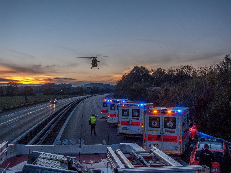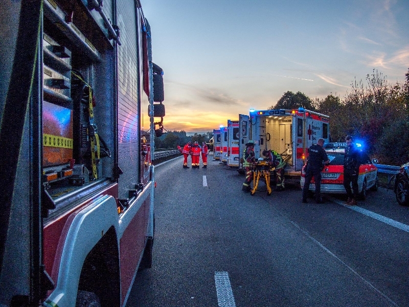 EIn Kleintranspoter prallte gegen einen Pannenfahrzeug das auf dem Seitenstreifen stand, durch den aufprall wurden die Fahrzeugteile über die ganze Fahrbahn verteilt. Die Feuerwehr unterstütze den Rettungsdienst beim versorgen der verletzten Personen, und richtete einen Hubschrauberlandeplatz ein. Die A96 in Fahrtrichtung Lindau musste teilweise komplett gesperrt werden.