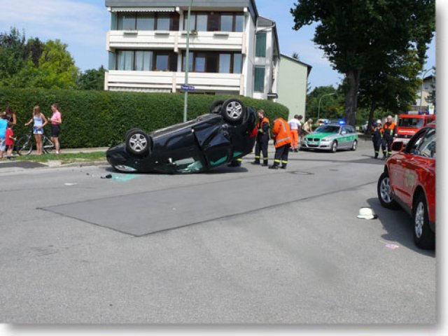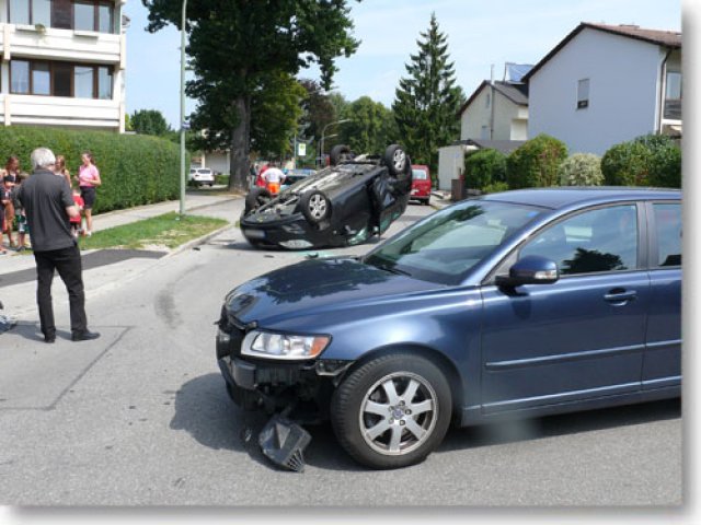 Am Donnerstag Mittag ereignete sich ein Verkehrsunfall auf der Kreuzung Pössingerstraße und Bayerfeldstraße. Nach Angaben der Polizei hat ein Verkehrsteilnehmer ein anderes vorfahrtsberechtigtes Fahrzeug übersehen und fuhr über die Kreuzung. Nach dem Zusammenprall wurde ein Fahrzeug umgeworfen und blieb auf dem Dach liegen. Die Fahrerin wurde dabei leicht verletzt. Weitere Verletzte gab es keine. Die Feuerwehr übernahm die Verkehrssicherung und die Fahrbahnreinigung. (ts)