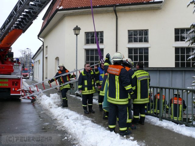 Die Person wurde in einer Bergewanne über die Drehleiter geborgen.