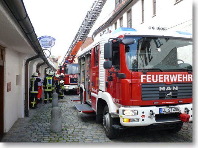Vermutlich wegen einer noch angeschalteten Herdplatte brach am Dienstagabend in einem Büro im Dachgeschoss in der Hinteren Salzgasse ein Feuer aus. Die Feuerwehr Landsberg rückte unter Atemschutz in das Gebäude vor und brachte das Feuer schnell unter Kontrolle. Mittels Hochdrucklüfter wurde das Gebäude im Anschluss noch belüftet. Verletzt wurde bei dem Brand niemand. (ts)