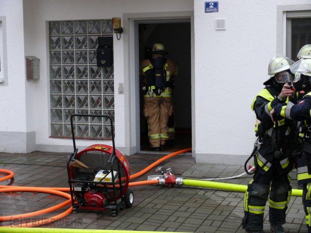 Die Feuerwehr Landsberg wurde mit der Drehleiter zur unterstützung der Feuerwehr Windach zu einem Wohnungsbrand gerufen.