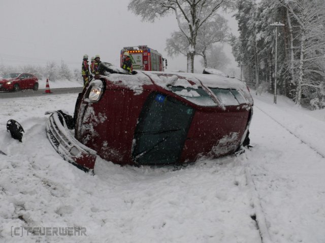 Die Feuerwehr wurde zu einem Verkehrsunfall auf die B17 gerufen. Dort kam ein PKW von der Straße ab und blieb in der Böschung neben der angrenzenden Bahnstrecke zum erliegen. Die Feuerwehr sicherte die Unfallstelle und regelte den Verkehr.