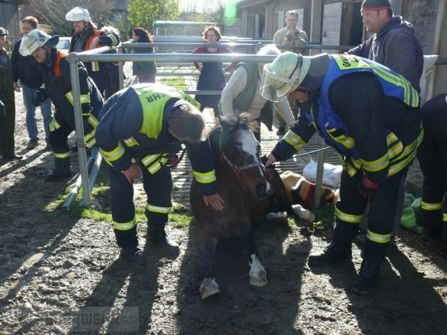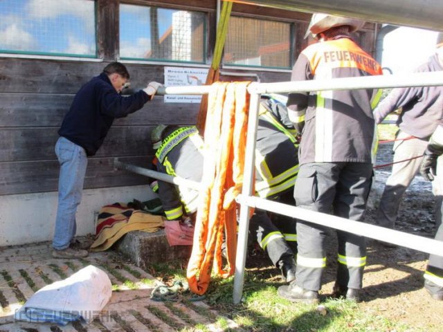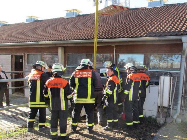 Am Donnerstag Vormittag wurde die Feuerwehr Landsberg zu einer Großtierrettung zur Pössinger Au in Landsberg gerufen. Ein Wallach stürzte dort in einen Wasserschacht und konnte sich selbst nicht mehr befreien. Die Feuerwehr hob den Wallach mittels Bandschlingen und der Drehleiter aus dem Wasserschacht. Das Tier erlitt bei dem Sturz nur Schürfwunden. (ts)