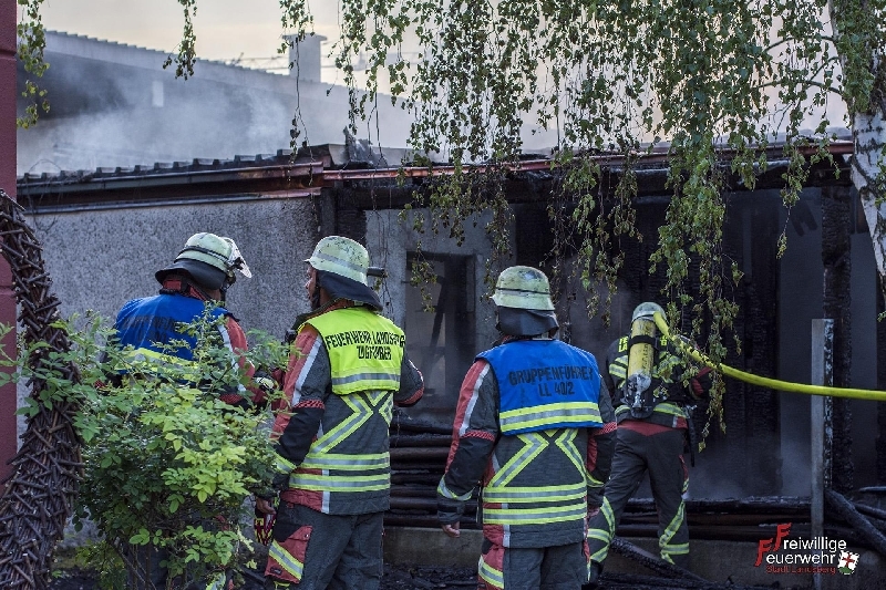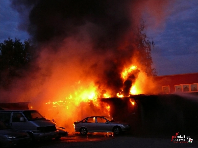 Am frühen Samstagmorgen brannte in Landsberger Industriegebiet ein an eine Werkstatt angrenzender Holzschuppen komplett nieder. Beim eintreffen der Feuerwehr stand der Schuppen bereits im Vollbrand, es wurden die Feuerwehren aus Erpfting und Kaufering nachgefordert. Bei den Löscharbeiten waren zwei Drehleitern und mehrere Trupps mit Atemschutz im Einsatz.