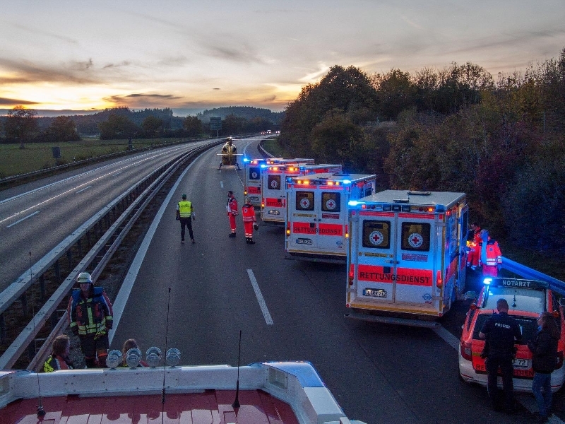 EIn Kleintranspoter prallte gegen einen Pannenfahrzeug das auf dem Seitenstreifen stand, durch den aufprall wurden die Fahrzeugteile über die ganze Fahrbahn verteilt. Die Feuerwehr unterstütze den Rettungsdienst beim versorgen der verletzten Personen, und richtete einen Hubschrauberlandeplatz ein. Die A96 in Fahrtrichtung Lindau musste teilweise komplett gesperrt werden.