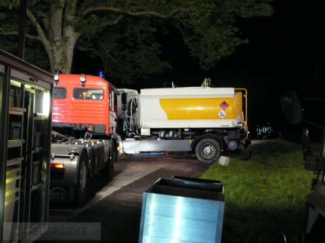 Die Feuerwehr Landsberg wurde am späten Montag Abend zur unterstützung der Feuerwehr Finning gerufen. Einige Stunden vorher ereignete sich auf der ST2346 ein Verkehrsunfall mit einem Tanklastzug. Die Feuerwehr Landsberg musste mit Hilfe von Spezialpumpen das Heizöl aus dem verunfalten LKW in einen anderen LKW pumpen.(pm)