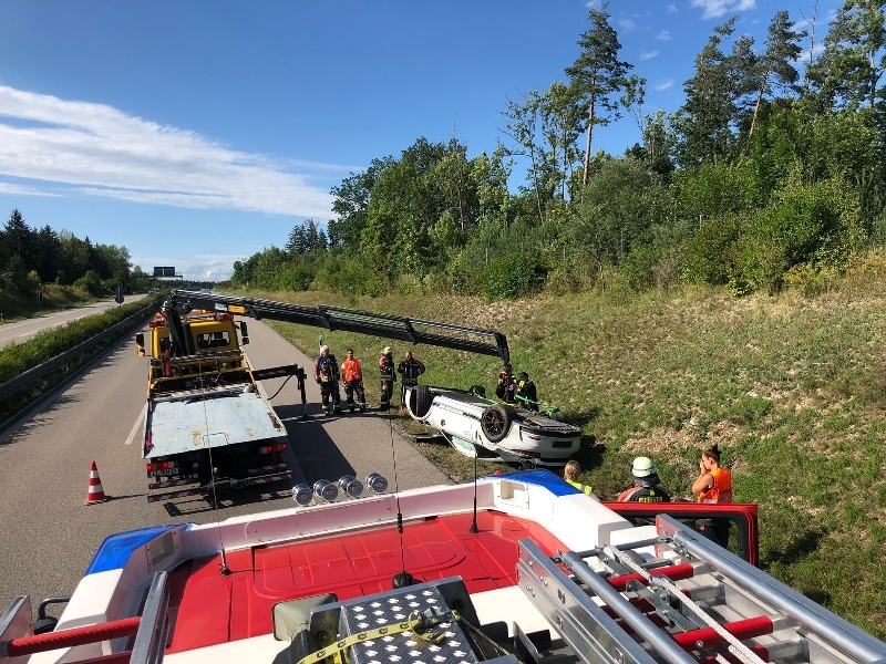 Ein PKW kam von der Fahrbahn ab und überschlug sich, die Feuerwehr sicherte die Einsatzstelle ab.