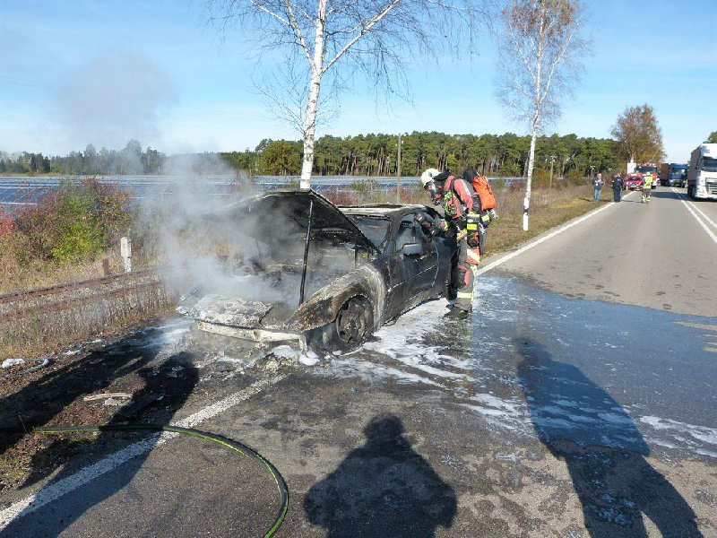 Beim eintreffen der Feuerwehr stand der PKW bereits im Vollbrand, ein Trupp unter Atemschutz hatte das feuer schnell unter Kontrolle. Für die Löscharbeiten wurde der Fahrbahn in richtung Schongau gesperrt, und über die Gegenfahrbahn geleitet.