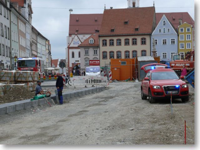 Am Donnerstag gegen Mittag musste die Feuerwehr Landsberg zu einer Personenbergung in die Herkomer Str. ausrücken. Eine junge Frau musste mittels Drehleiter aus dem dritten Stock des Ärztehauses geborgen werden. Durch die tatkräftige Mithilfe der Mitarbeiter der Baufirma war ein Durchkommen auf der Baustelle des Hauptplatzes ohne Probleme möglich. (ts)