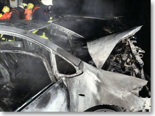 In der Nacht vom Donnerstag geriet aus noch ungeklärten Gründen ein PKW, der zuvor bei einem Verkehrsunfall abgeschleppt wurde, in einer Abschlepphalle in Landsberg in Brand. Die Feuerwehren Landsberg mit allen Ortsteilen, die Feuerwehr Kaufering und die Unterstützungsgruppe aus Dießen wurden zu diesem Brand alarmiert. Die Erkundung wurde durch den Stadtbrandinspektor aus Landsberg durchgeführt. Der Erstangriff erfolgte durch die Feuerwehr Landsberg mittels eines Atemschutztrupps. Dieser brachte das Feuer schnell unter Kontrolle und konnte nach 10 Minuten "Feuer aus" melden. Anschließend wurde die Halle mittels Hochleistungslüfter belüftet. Der Unfall-PKW sowie 3 weitere Fahrzeuge brannten völlig aus. Der Gesamtschaden wurde von der Polizei auf ca. 250000 Euro geschätzt. (ts)