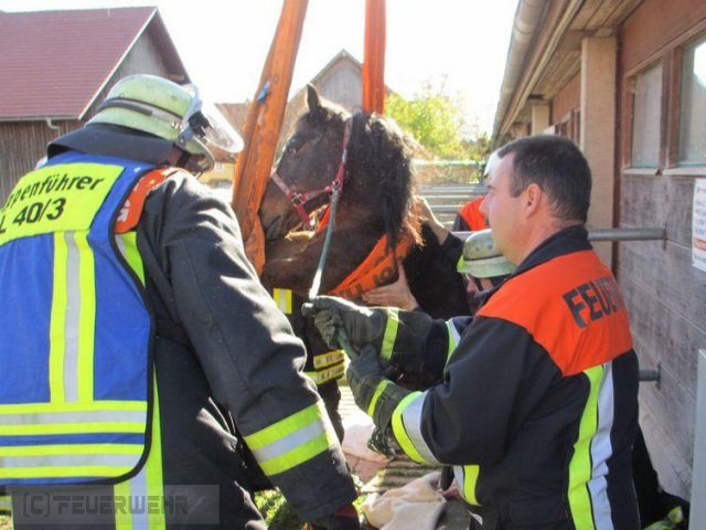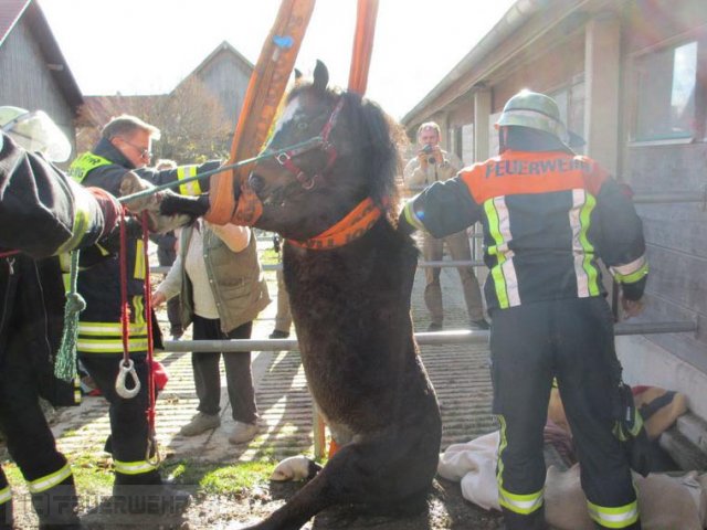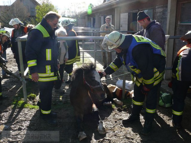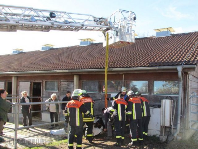 Am Donnerstag Vormittag wurde die Feuerwehr Landsberg zu einer Großtierrettung zur Pössinger Au in Landsberg gerufen. Ein Wallach stürzte dort in einen Wasserschacht und konnte sich selbst nicht mehr befreien. Die Feuerwehr hob den Wallach mittels Bandschlingen und der Drehleiter aus dem Wasserschacht. Das Tier erlitt bei dem Sturz nur Schürfwunden. (ts)